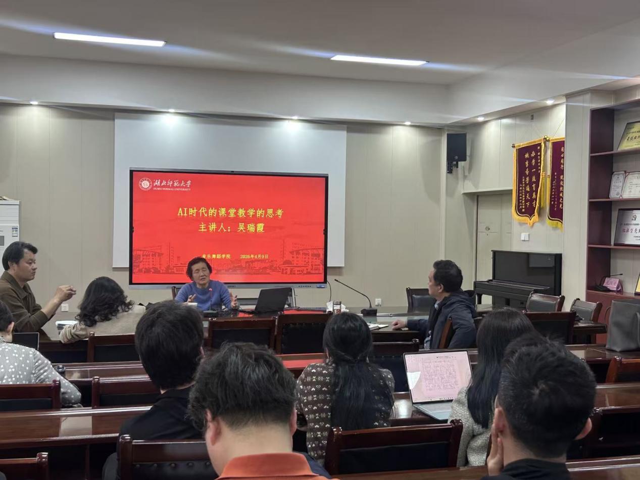 4月9日下午,我院在音乐大楼13311教室举办专题学术讲座。本次讲座以“AI时代课堂教学的思考”为主题,由吴瑞霞教授担任主讲,学院全体硕士生导师及博士教师到场参加。