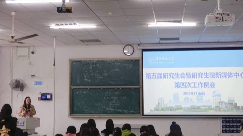 11月6日中午,第五届研究生会暨研究生院新媒体中心第四次工作例会在科技大楼9205教室召开。研究生工作部副部长、研究生院副院长周英杰老师,以及研究生会、研究生院新媒体中心全体成员参加,会议由秘书部干事王彬燕主持。